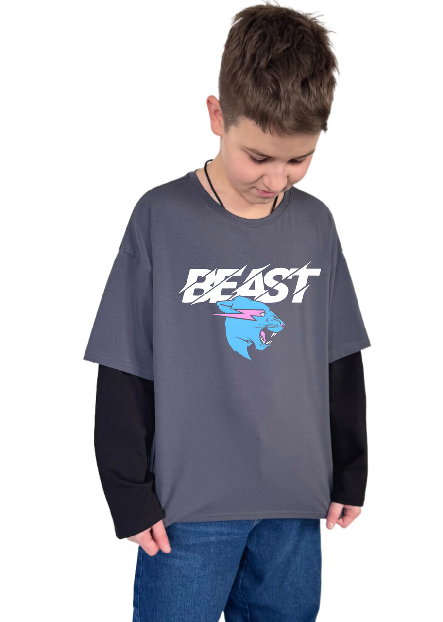 Особливості: Прямий крій, подвійний рукав, принт MrBeast